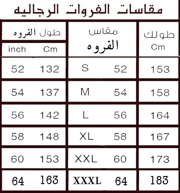 المقاسات الرجاليه نفس مقاس الثوب الجاهز والمقاسات النسائية نفس مقاس عبايه الكتف