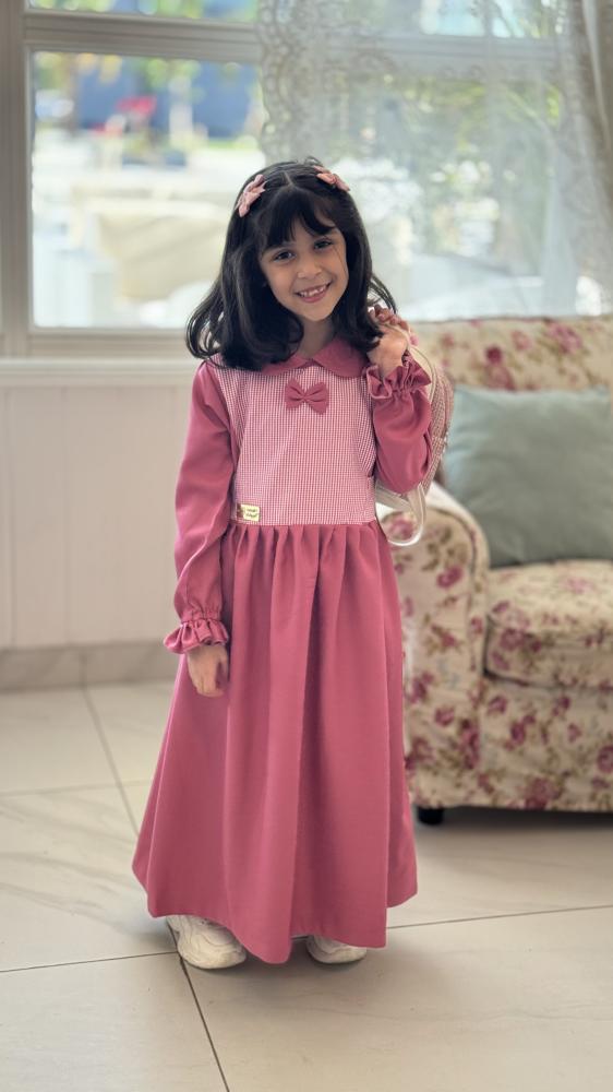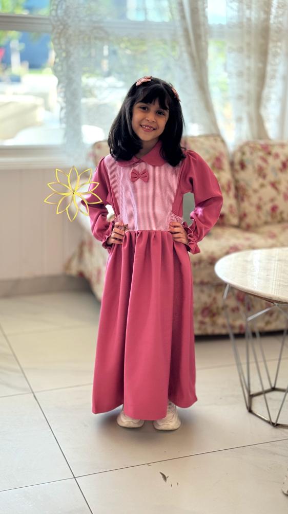مزينه بأزارير مع قصه صدر دائرية بكشكشه كاروهات ومعصم الاكمام
